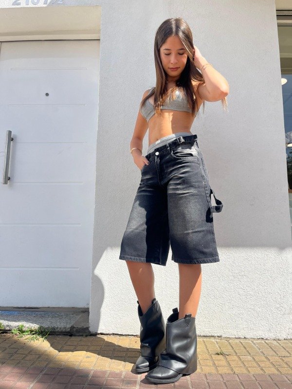Clásica, cómoda y con mucha actitud 🔥 Bermuda de jean negra estilo carpintera, con cintura ajustable para un calce perfecto. Su diseño urbano la hace ideal para armar looks street, relajados y súper actuales.