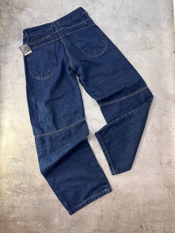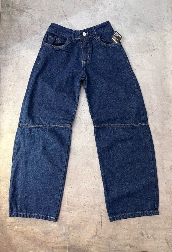 Jean baggy de denim azul oscuro, con costuras marcadas y corte amplio bien urbano.