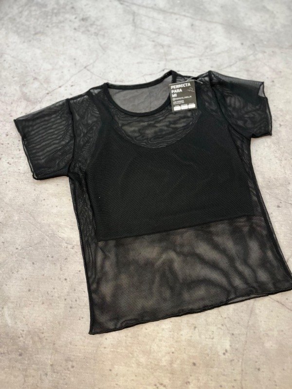 Combo canchero de remera de tul elastizado + top de microfibra, vienen juntos 🤍