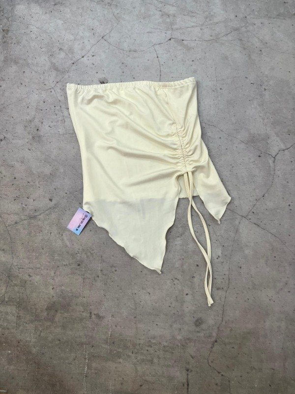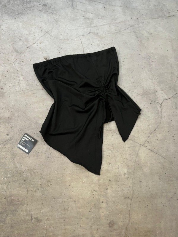 Diseño strapless con frunce lateral y terminación en pico, súper favorecedor y canchero 💅