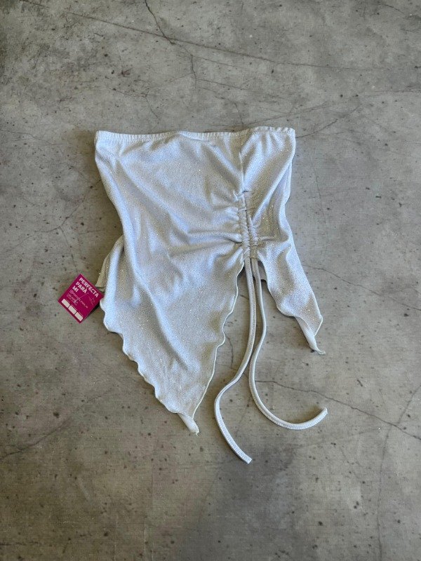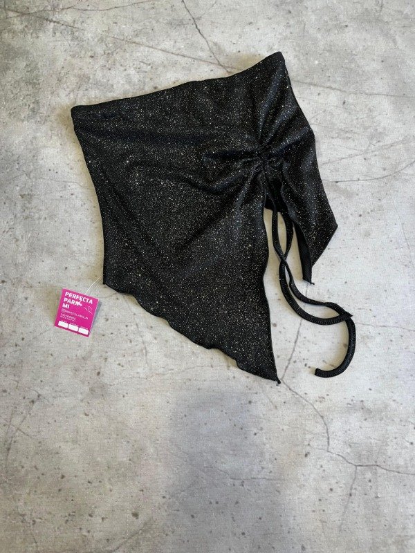 Confeccionado en tela con glitter, tiene frunce delantero regulable que le da un toque súper original y favorecedor 💖