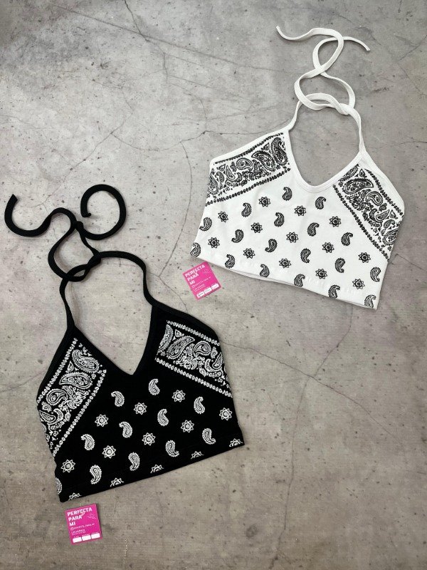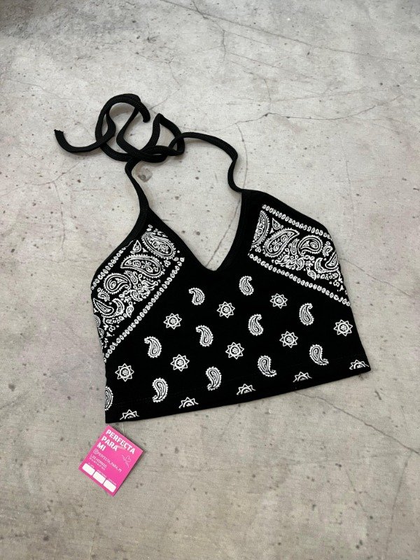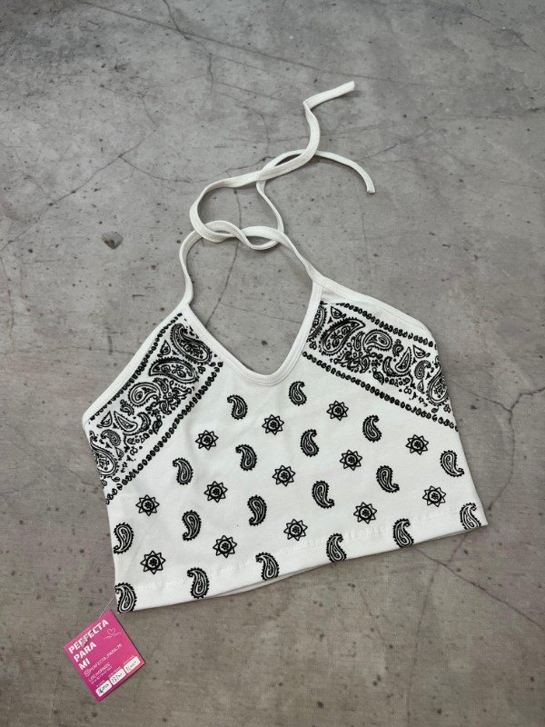 Confeccionado en algodón lycra, súper cómodo y con detalle de estampa tipo pañuelo que lo hace un must para tus looks de verano 🌞